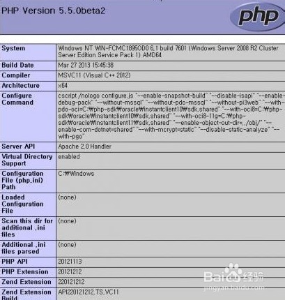 这里PHP5.5.0用php5apache2_4.dll来配置的。也不用PHP.ini文件了,用PHP默认的了。