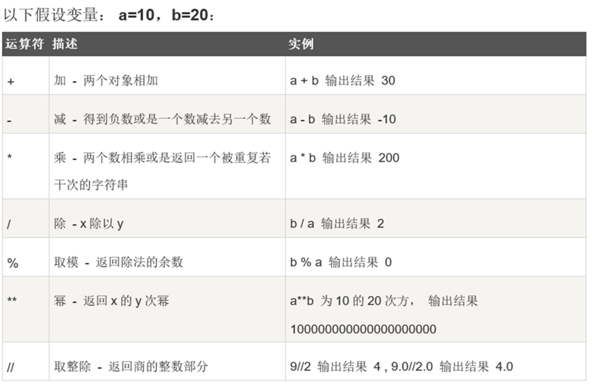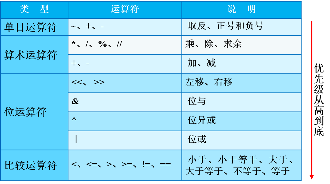 | ZeroDivisionError | 除(或取模)零 (所有数据类型) |