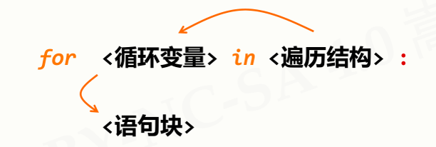 -由保留字for和 in组成,完整遍历所有元素后结束