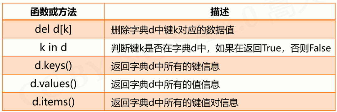采用 {} 或 dict() 创建,键值对用 “:” 表示。