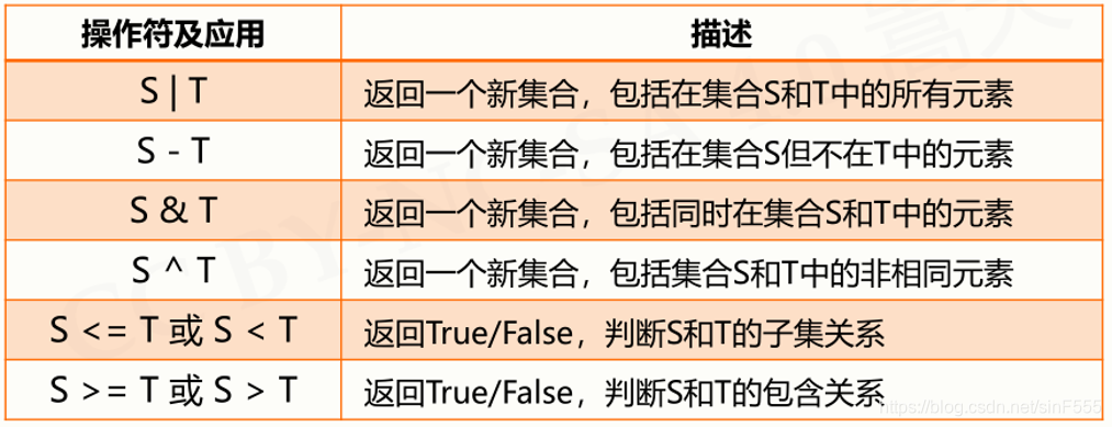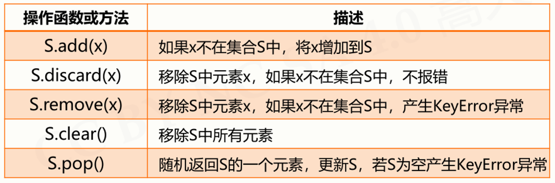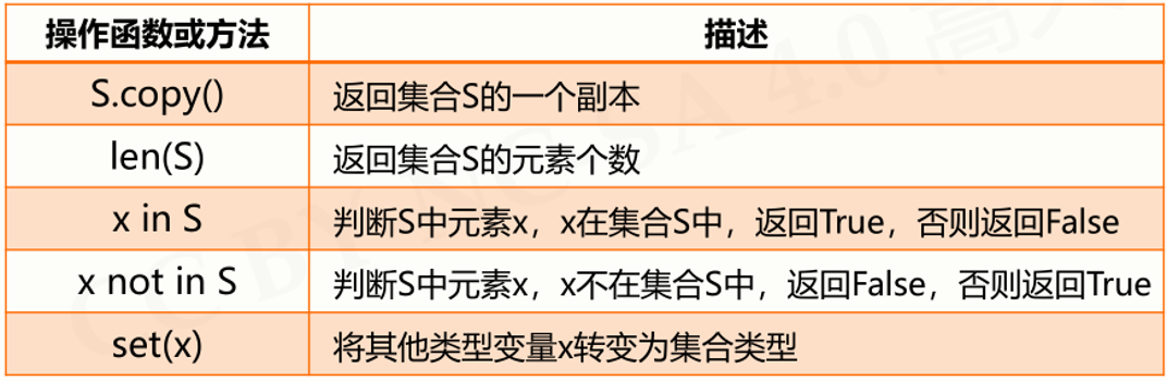 采用 {} 表示,元素间用 “,”间隔;用 {} 或 set() 建立;建立空集合,必须用 set()。