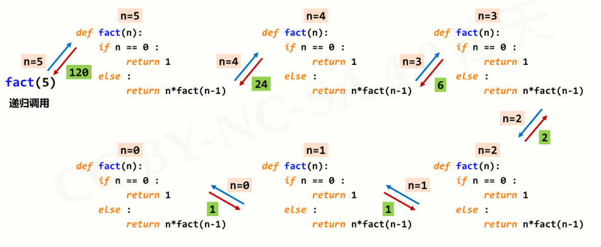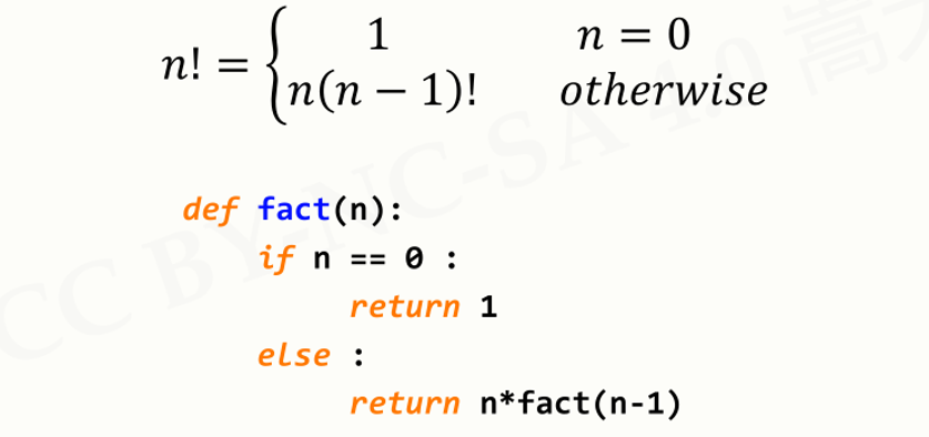 基线条件: 存在一个或多个基例,基例不需要再次递归,它是确定的表达式。