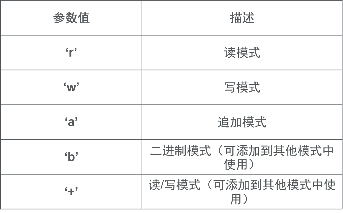 #文件名(name)为必选参数,模式(mode)和缓冲参数(buffering)是可选的