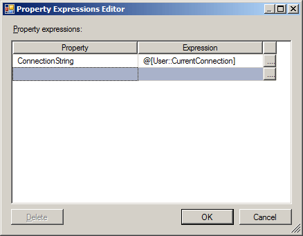 The final trick would be to use an Expression on the Excel Connection Manager. Again, right click on the CM and under Properties, there will be Expressions. It won't expand as there is nothing under it. Instead click the ellipses and then select ConnectionString property and select the ellipses again and this time drag down the @[User::CurrentFile] variable. Click OK x2 and now your connection manager is set to use wherever the CurrentConnection variable specifies.