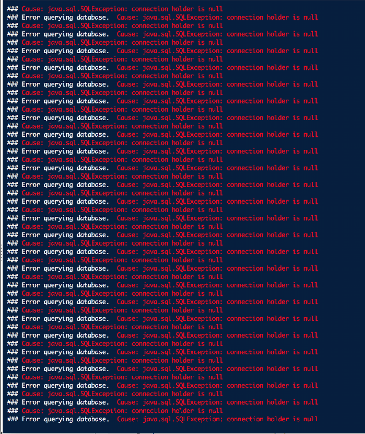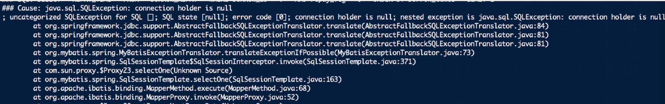 ; uncategorized SQLException for SQL []; SQL state [null]; error code [0]; connection holder is null; nested exception is java.sql.SQLException: connection holder is null