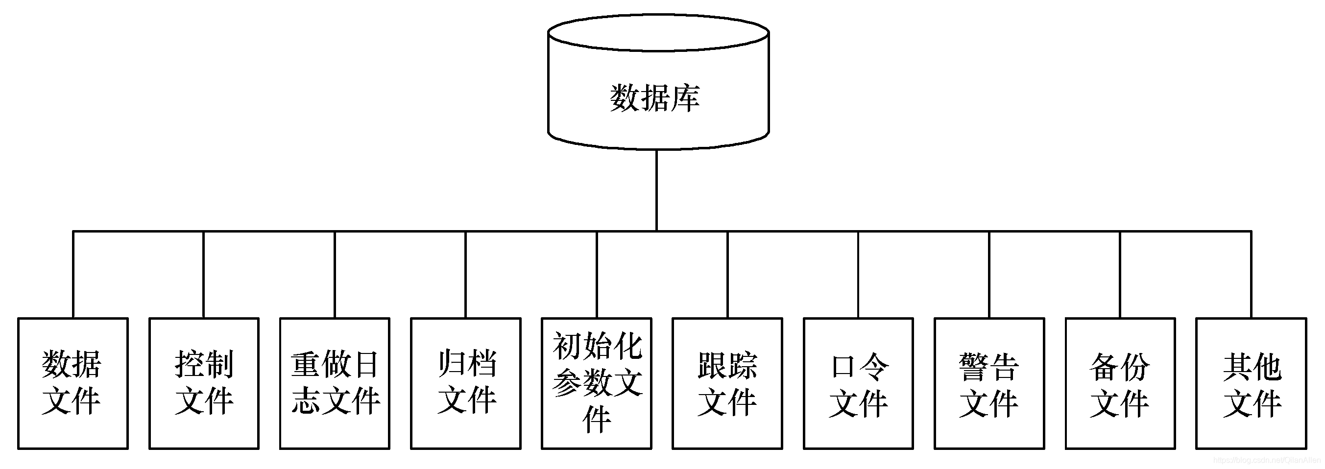 含义:物理操作系统文件的集合,主要包括构成数据库的各种物理文件,包括数据文件、控制文件、日志文件、参数文件(parameter file)、口令文件(password file)、跟踪文件(trace file)、警告日志文件(alert file)等,其中数据文件的扩展名为.DBF,控制文件的扩展名为.CTL,日志文件的扩展名为.LOG。