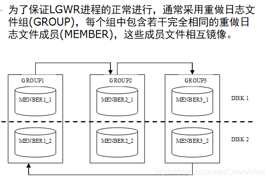 为防止日志文件被物理破坏,在同一个日志文件组中,允许对日志成员进行镜像,镜像的日志成员文件被存储在不同的物理磁盘中。