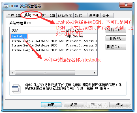 (5)、如果报错找不到ODBC数据源,很可能是以上步骤中数据源名称错误,或者创建的ODBC数据源不是系统DSN,而是错选了用户DSN。