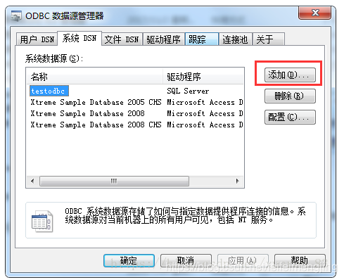 (3)、不仅仅可以连接SQL Server,其他类型ODBC数据源也可以,如mysql等;
