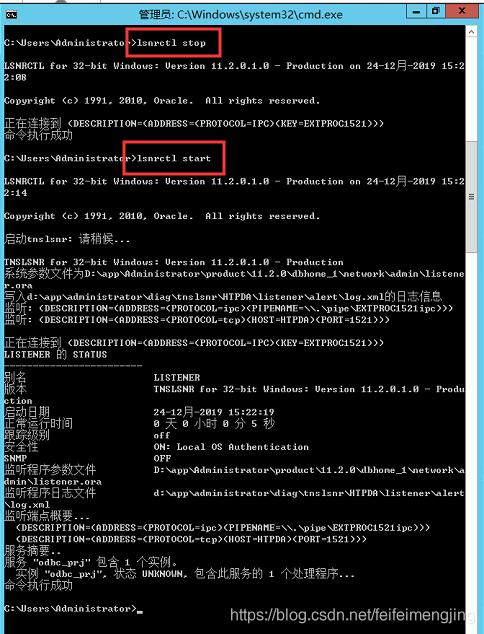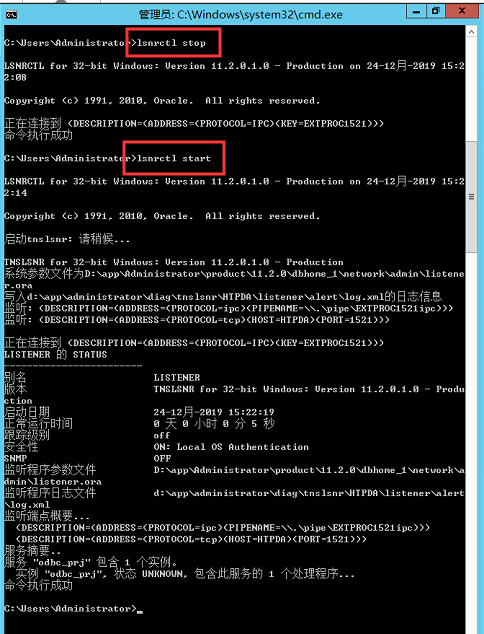 一般停止监听没有问题,但是如果启动不了监听(启动监听服务失败),多半说明第四部字符串配置有错误,注意检查。