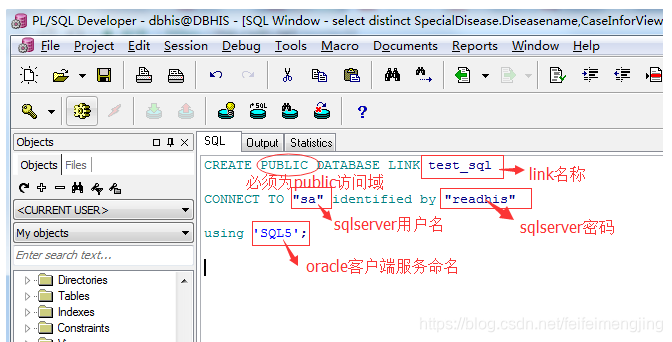 在PLsql中或者sqlplus和环境下运行上述sql命令创建DataBase Link