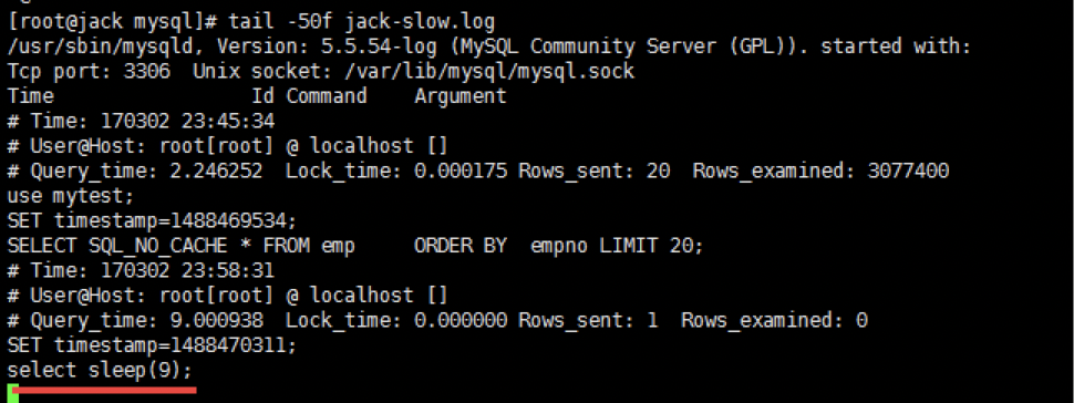 关于慢查询的参数slow_query_log_file ,它指定慢查询日志文件的存放路径, 系统默认会给一个缺省的文件host_name-slow.log (如果没有指定参数slow_query_log_file的话)