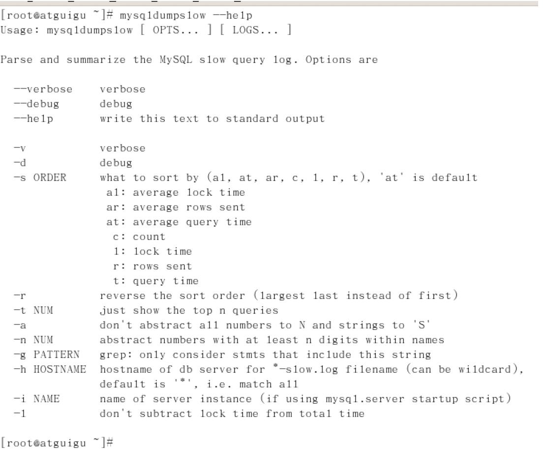 (1)查看mysqldumpslow的帮助信息