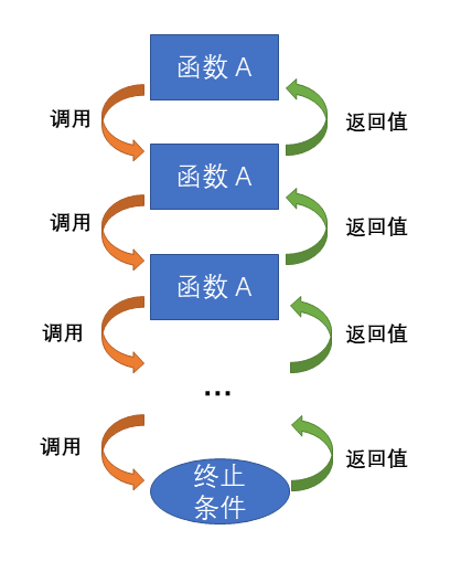 这是一个A函数递归调用自身的过程,因为递归是一个反复调用自身的过程,这就说明它每一级的功能都是一样的,因此我们只需要关注一级递归的解决过程即可.千万不要去纠结每一级调用和返回的细节!