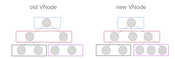 这张图中的相同颜色的方块中的节点会进行比对,比对得到「差异」后将这些「差异」更新到视图上。因为只进行同层级的比对,所以十分高效。