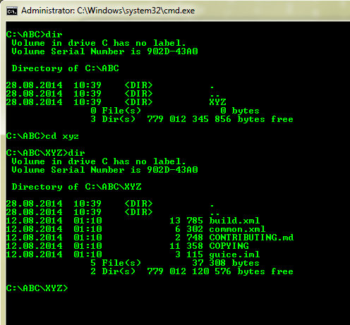 C:\ABC\XYZExecute the command: