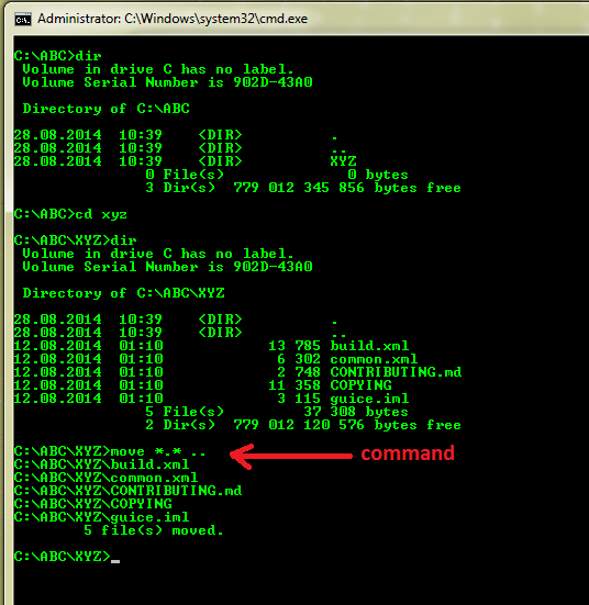move *.* ..command to transfer files to the parent (ABC) folder