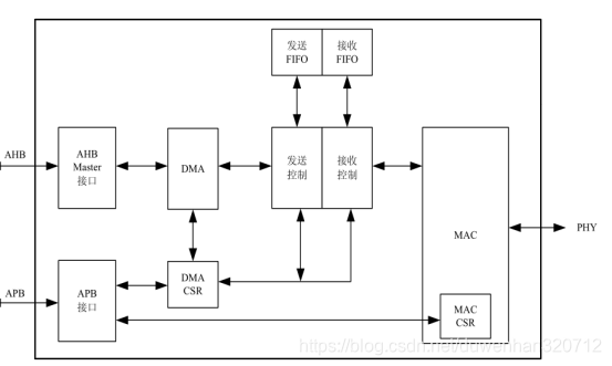 APB 接口即 CSR 接口,用于读写访问 DMA CSR 和 MAC CSR。