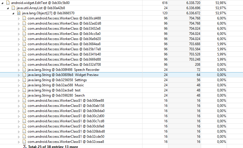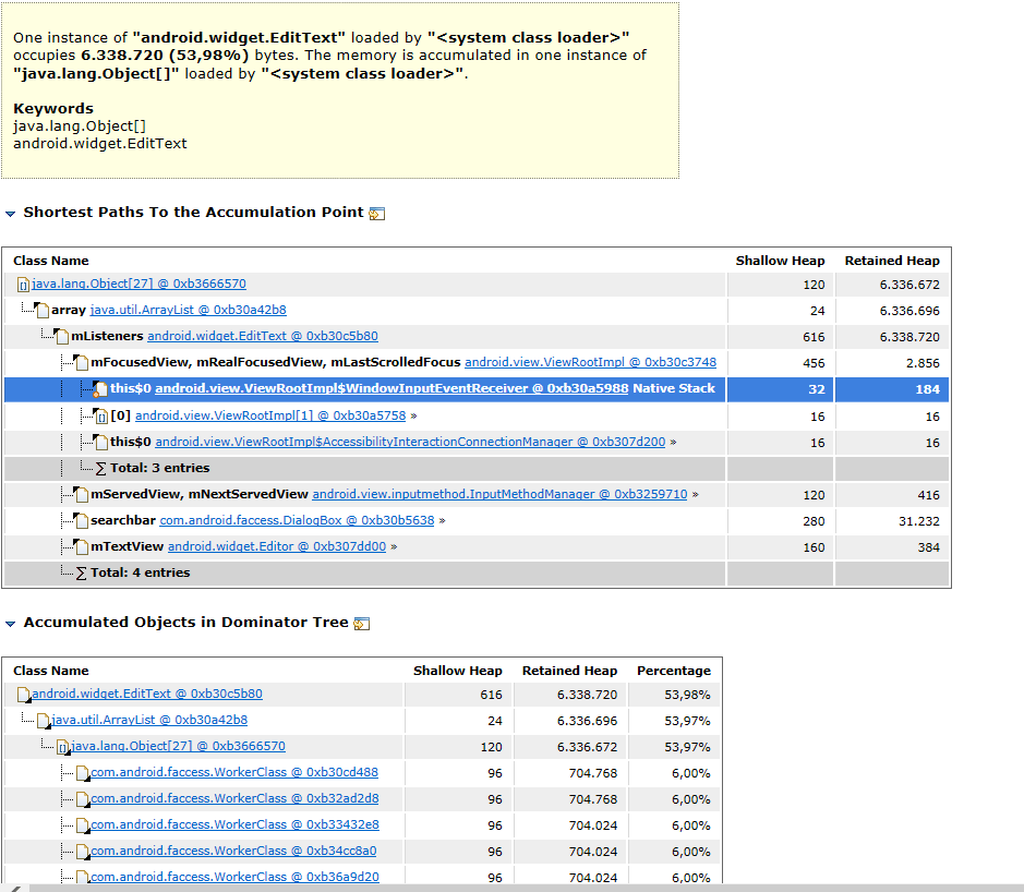 In the AsyncTask I add a onTextChangeListener to my EditText!(Which causes the MemoryLeak later).