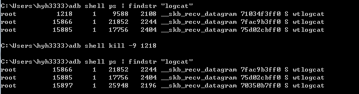 注意抓取完需要杀掉logcat进程,否则再次使用相同命令的时候,就会有两个logcat写同一个文件了.
