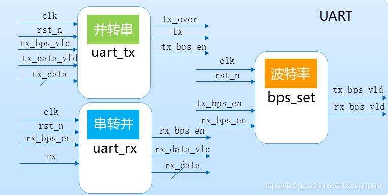 UART是很简单的协议,也可以说是入门级的协议,它本身不值得我们花费多大的精力探讨,但是我们可以把它看作我们刚学C语言时候写下的”hello world”,刚学习单片机时候点亮的一个led灯,这样,它就有意义了,而且它的意义已经不再是实现一个功能了。我们要好好利用这个简单的协议去理解“协议”这个概念以及如何进行模块化设计,这对FPGA来说,是尤为重要的两个方面。