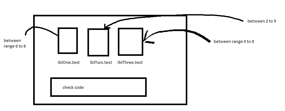 So basically in a form, you have 3 textboxes and each of them you can input a number, then you have a button that check if each of these textboxes are in a range of numbers specified. It's very much like a lock combo, but I need help checking values, for example;