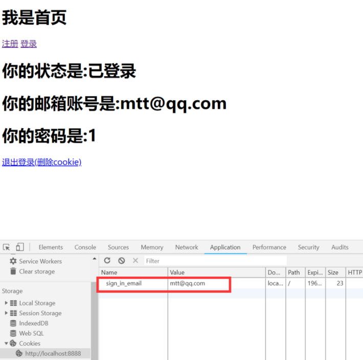 上面的代码会在浏览器保存一个名为foo的 Cookie,它的值为bar。