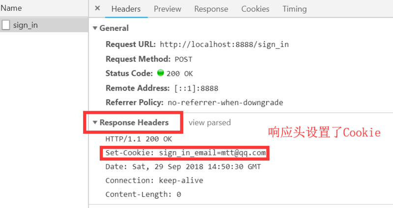 以后,浏览器一旦访问这个路径,浏览器就会附上这段 Cookie 发送给服务器。