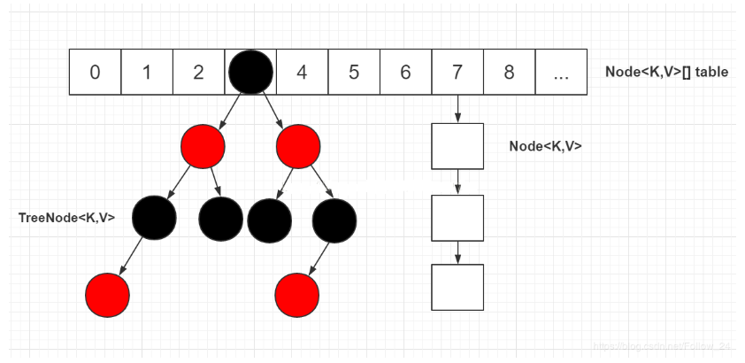 - 在红黑树上,叶子节点也可能有next节点,因为红黑树的结构跟链表的结构互不影响