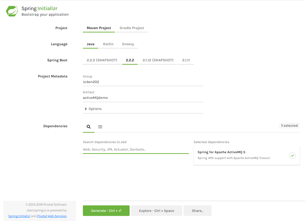 <artifactId>spring-boot-starter-activemq</artifactId>