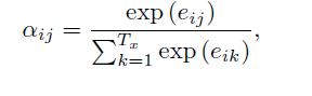 eij由函数a描述的前馈神经网络的输出得分,该函数试图捕获j处输入与i处输出之间的对齐程度。