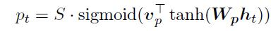 其中“Vp”和“Wp”是在训练期间学习的模型参数,而“S”是源句的长度。显然,pt ε[0,S]。