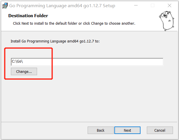 默认安装路径是 C:\Go,通常都会改,但这会影响到后面设置环境变量,因此更改到哪里要记住。