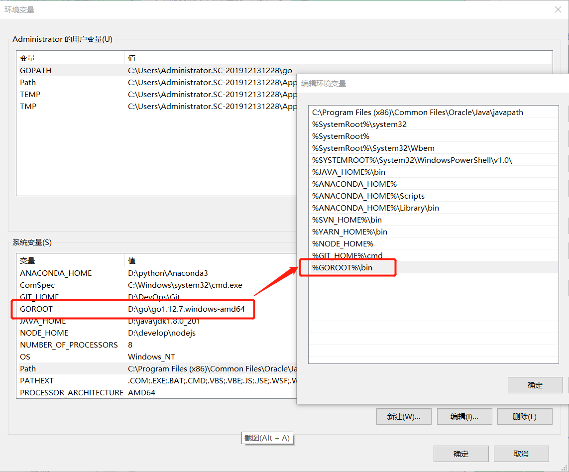 完成安装后,打开环境变量设置。默认安装一个名为GOROOT的变量,值就是安装路径
