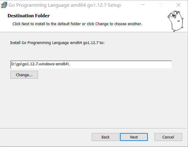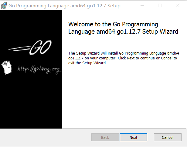 自定义路径安装到 D:\go\go1.12.7.windows-amd64\ 下,继续