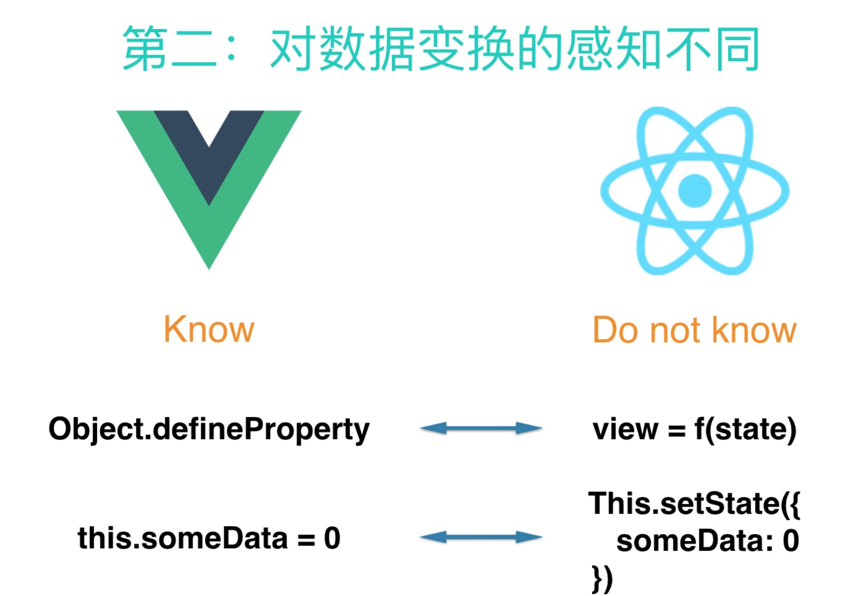 react整体的思路就是函数式,所以推崇纯组件,数据不可变,单向数据流,当然需要双向的地方也可以做到,比如结合redux-form,而vue是基于可变数据的,支持双向绑定。react组件的扩展一般是通过高阶组件,而vue组件会使用mixin。vue内置了很多功能,而react做的很少,很多都是由社区来完成的,vue追求的是开发的简单,而react更在乎方式是否正确。