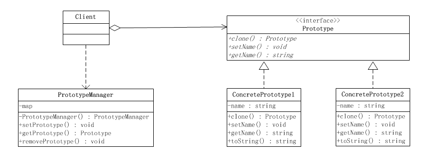- 原型管理器(PrototypeManager):客户端client直接调用原型管理器