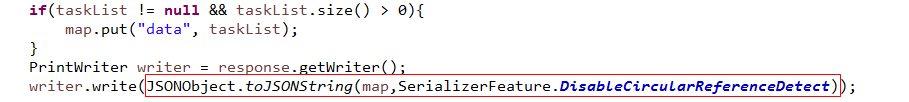 注:map中存放了你需要传到前台的数据对象:data!并且data中的对象数据存在循环引用。