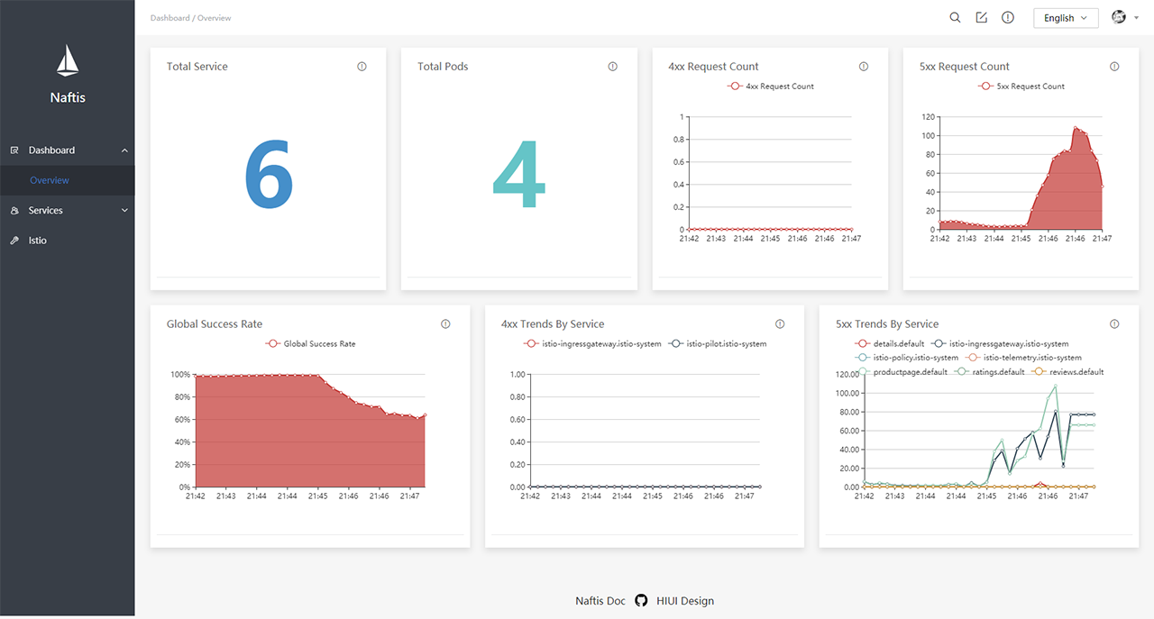 Naftis 是一个基于 web 的 Istio dashboard,通过任务模板的方式来帮助用户更方便地执行 Istio 任务。 用户可以在 Naftis 中定义自己的任务模板,并填充变量来构造单个或多个构造任务实例,从而完成各种服务治理功能。