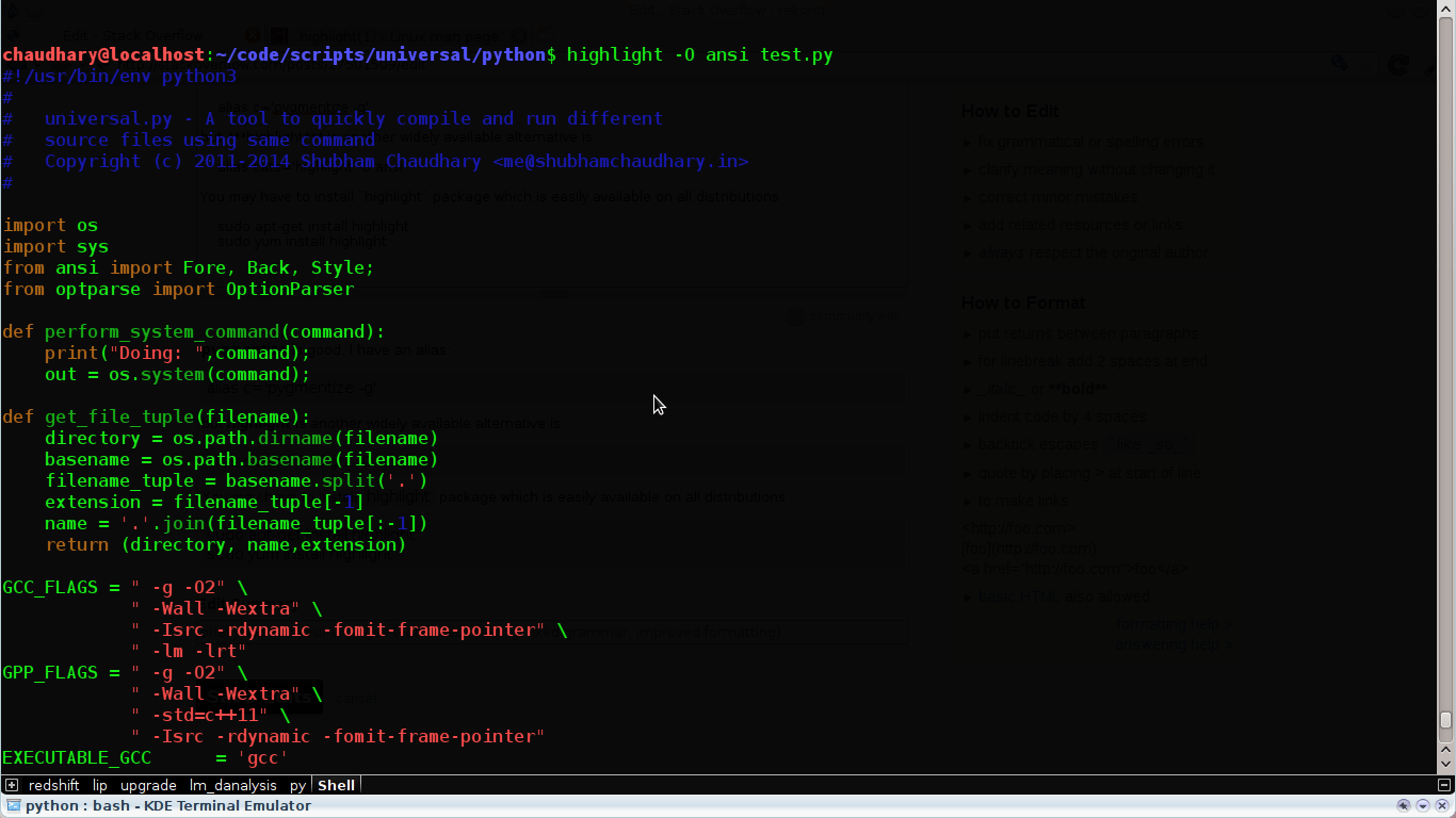 And then make an alias to script. alias cat=colorize_via_pygmentize. Also dont forget to save this in ~/.bashrc.