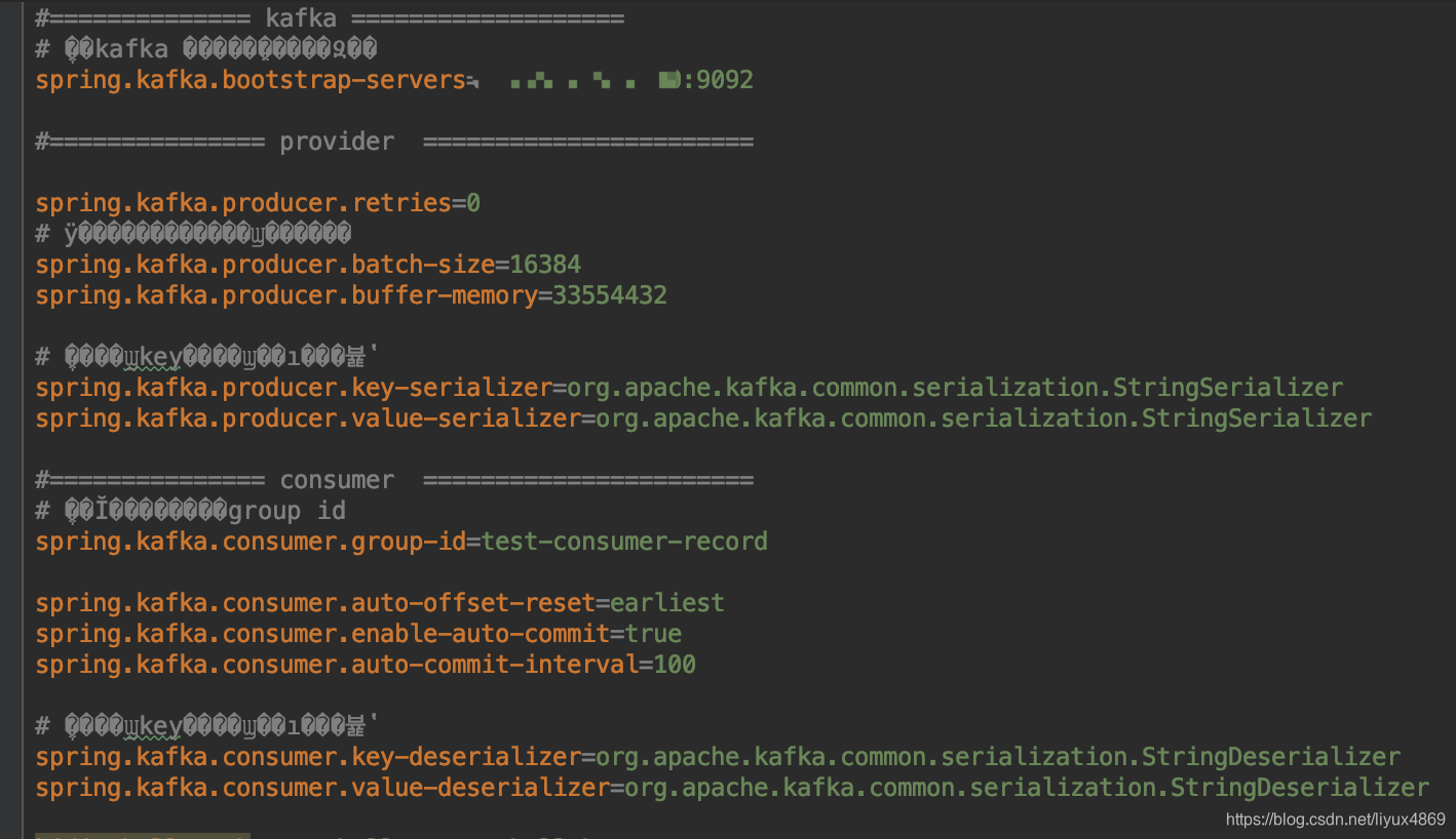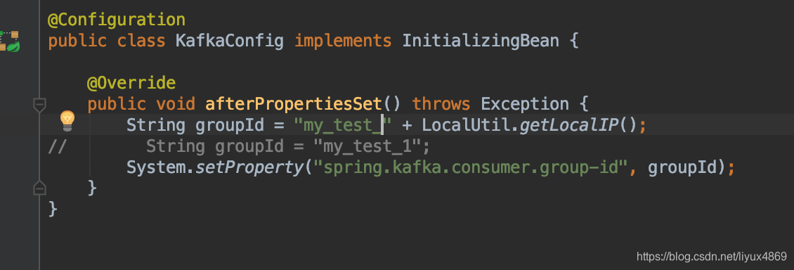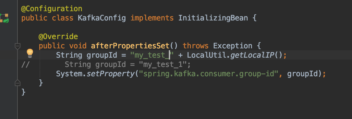 一般kafka的消费组groupId是在SpringBoot中的配置文件中配置的,如下: