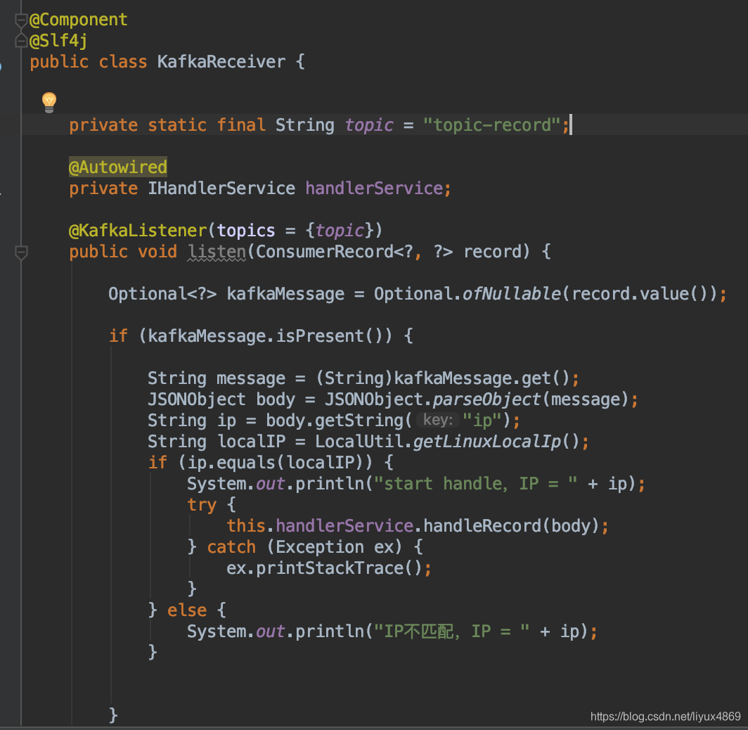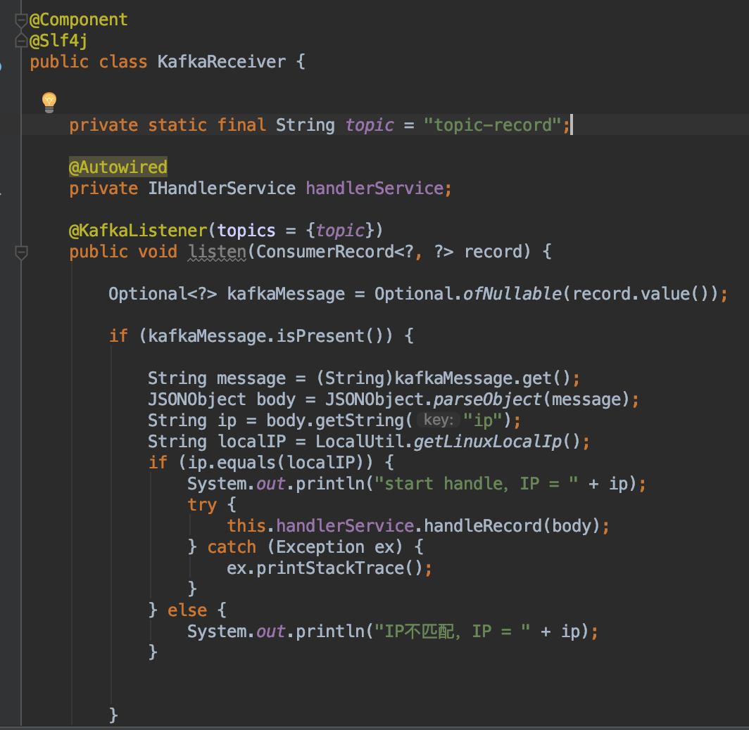 SpringBoot创建监听方法也非常简单,只要使用@KafkaListener注解就可以创建一个监听方法了,不过要注意这里的topic参数必须静态的。