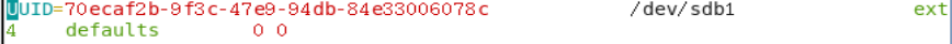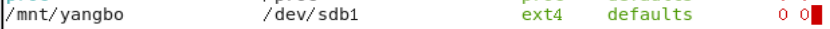 /mnt/yangbo /dev/sdb1 ext4 defalts 0 0