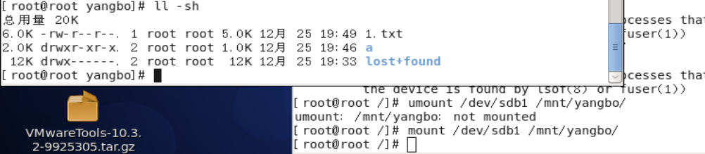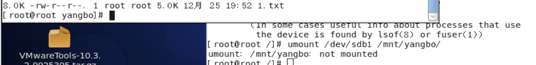 输入mount /dev/sdb1 /mnt/yangbo挂载文件