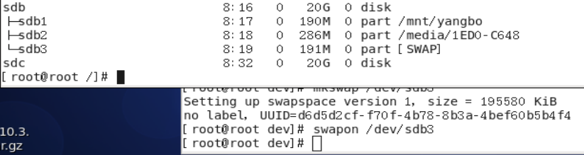 输入swapon /dev/sdb3 加载交换分区