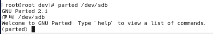 输入 Parted /dev/sdb 进入parted软件