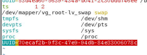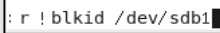 末行模式下输入r ! blkid /dev/sdb1 查看sdb1的uuid