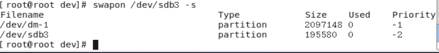 输入swapon /dev/sdb3 –s 查看系统已经加载的swap交换分区
