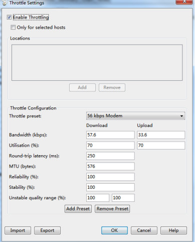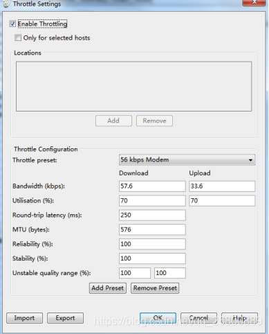 4. 使用软件进行网络代理,模拟不同的网络带宽、延时率、丢包率