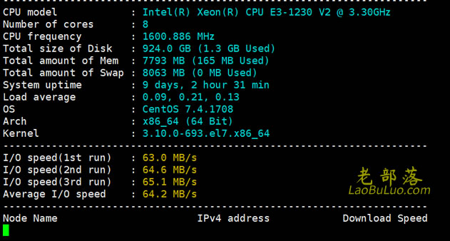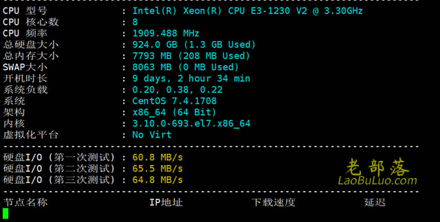 这个脚本来自Oldking,可以快速的展现当前服务器的配置、IO、SpeedTest内置下载速度。